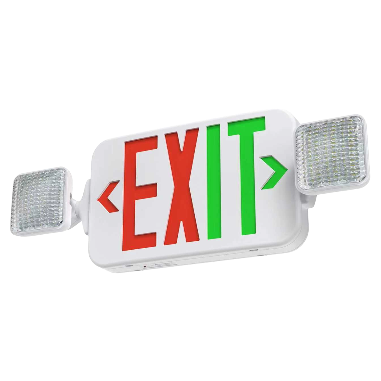 The CR-7088R/G is a combo unit combining a dual color LED exit sign with two fully adjustable 1.2W emergency lamp heads. The exit sign features fully illuminated 6″ characters powered by long-life, high-intensity LEDs, while 24 PCS SMD LEDs provide 2.4W of emergency area lighting. Built with injection-molded thermoplastic ABS housing that is UL-94-V0 flame-retardant and fire-resistant. Face configuration is field-selectable between single- and double-face. Mounts to wall and ceiling, rated for damp locations. Available in red or green letter, with optional remote capability (RC) or auto self-diagnostic (AT) versions. Powered by a maintenance-free 3.6V NiCad battery with 90 minutes of emergency backup.