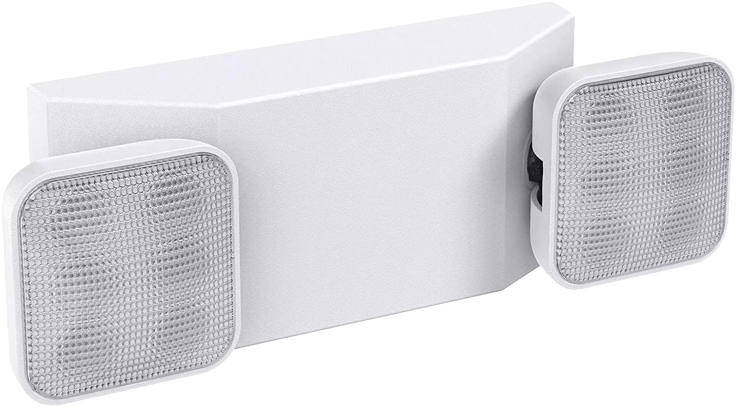 The CR-7033AC is a reliable LED emergency light featuring two fully adjustable 1.2W lamp heads for flexible directional coverage. Built with injection-molded ABS housing in a clean white finish, it mounts to both wall and ceiling surfaces and is rated for damp locations. Powered by a maintenance-free 3.6V NiCad battery, it delivers 180 minutes of backup illumination after a full 24-hour charge. Meets NFPA 101 Life Safety Code, NEC, OSHA requirements, and California CEC Title 20 compliant.