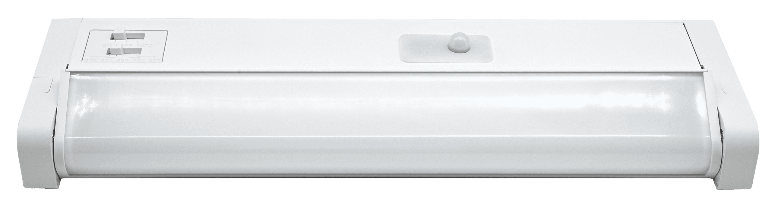 Premium swivel under cabinet light with built-in PIR sensor and 5CCT selectable color temperature. Features 65° swivel lens adjustable down 35° and up 30°, making it perfect for directional lighting or as a hidden backlight. The external switch can be selected in ON, OFF and AUTO modes. With PIR sensor, lights turn on automatically when motion is detected within 12 feet, and turn off after 30 seconds when the area is clear. This fixture is plug-in mounted and can connect two or more lights together or be installed separately. All necessary accessories included. Suitable for installation on cabinets, counters, or wardrobes. Damp location rated.